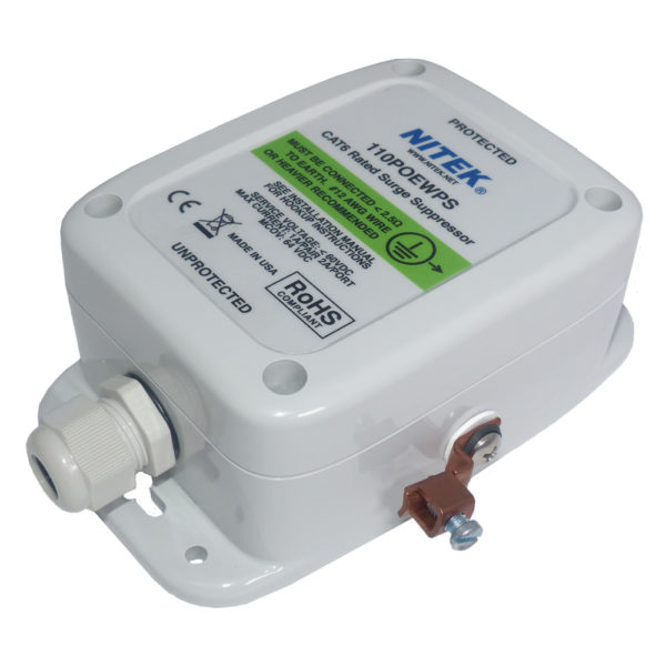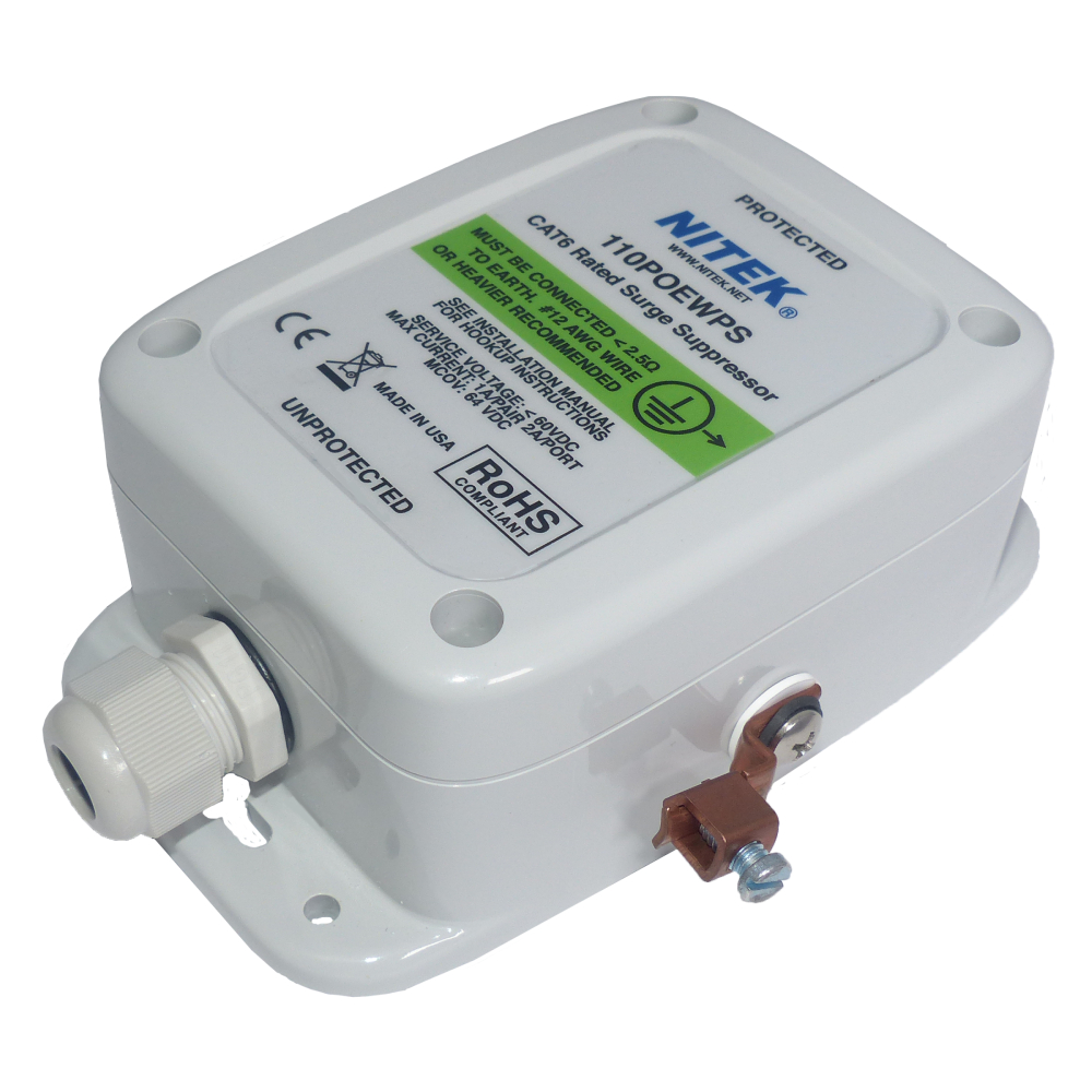 The 110POEWPS is one of NITEK’S newest surge protection products. The 110POEWPS is a weatherproof two-stage surge protector rated for CAT6 installations. The 110POEWPS will pass POE+ power. It can be installed easily and quickly in line using a 110 punch-down tool.