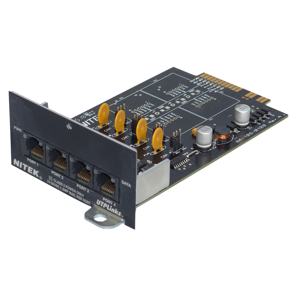 The CXM22 is unique unshielded twisted pair (UTP) transmission product designed to operate with TIA/EIA standards-based network cabling. The Card plugs into and is powered through the CX452 modular card cage. The CXM22 is designed to accommodate four cameras. The primary function of the CXM22 is to provide a means of interfacing copper backbone cables to horizontal cable runs and inserting voltage to the individual camera and or P/TZ provides data distribution. Using single standards-compliant 4-pair UTP Category 5 or better cable, video, data and power can be sent up to 100 meters to a fixed or P/T/Z camera.
