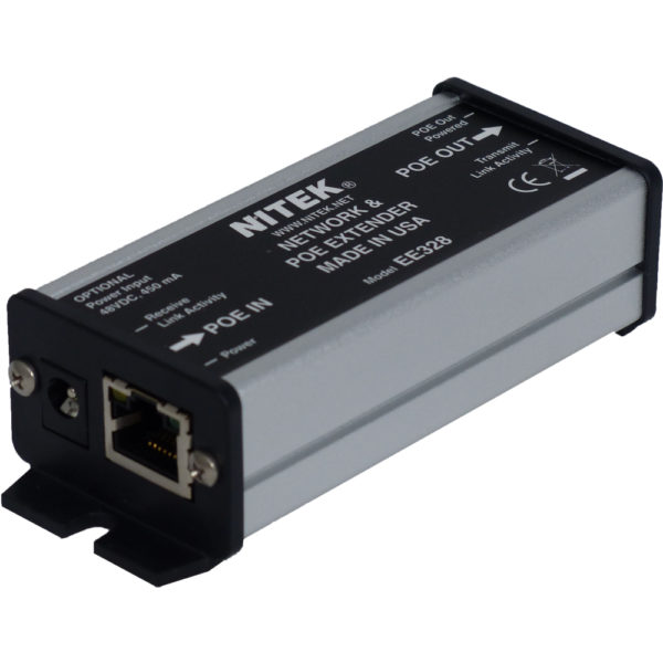 LED indicators show the status of network communication and POE power. The EE328 requires no network setting to be changed or adjusted. The EE328 extends network communications to overcome cable distance limitations offering connections to devices in locations traditional networking does not allow. The units are constructed of industrial-grade RoHS compliant plated aluminum which is finished with a corrosion-resistant finish making it very durable.