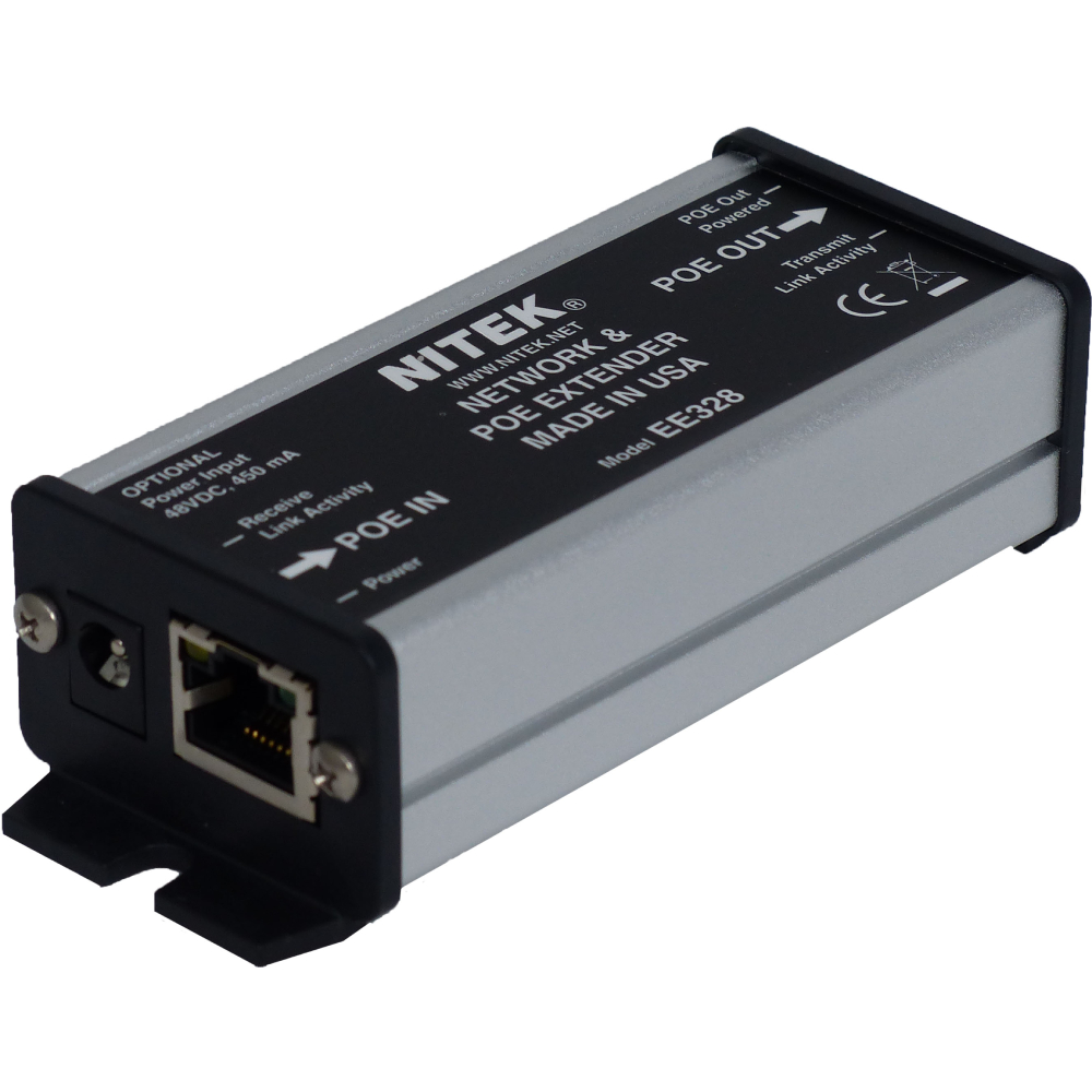 The EE328 allows Ethernet and POE to be extended. The EE328 is a single unit that requires very little installation time and absolutely no setup or configuration. Installation requires simply connecting the unit in line with the network run. Each unit extends the cable run by 100 meters or 328 feet. The EE328 uses power from the POE network switch and extends the power out to the next 100 meters. If the network switch is not a POE device the EE328 has an optional power input and can also function as a POE inserter in addition to extending the network communication signals. The EE328is a fully 802.3af compliant unit that is ideal for extending network signals or network and POE signals.