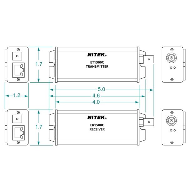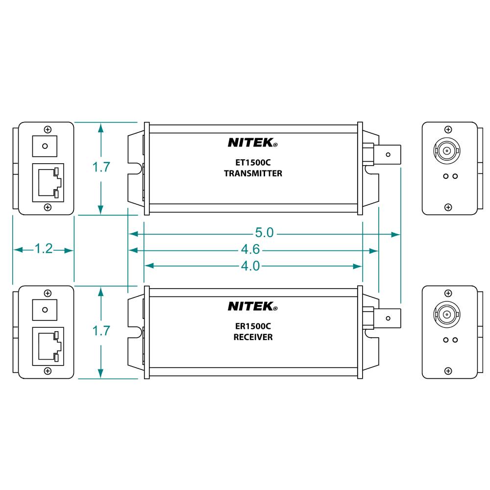 The EL1500C-P is a transmitter/receiver set consisting of the ER1500C and the ET1500C. These environmentally hardened products provide 10/100 Ethernet and Power Over Ethernet (PoE) at distances of up to 500m over RG-59 or RG-6 coaxial cabling.