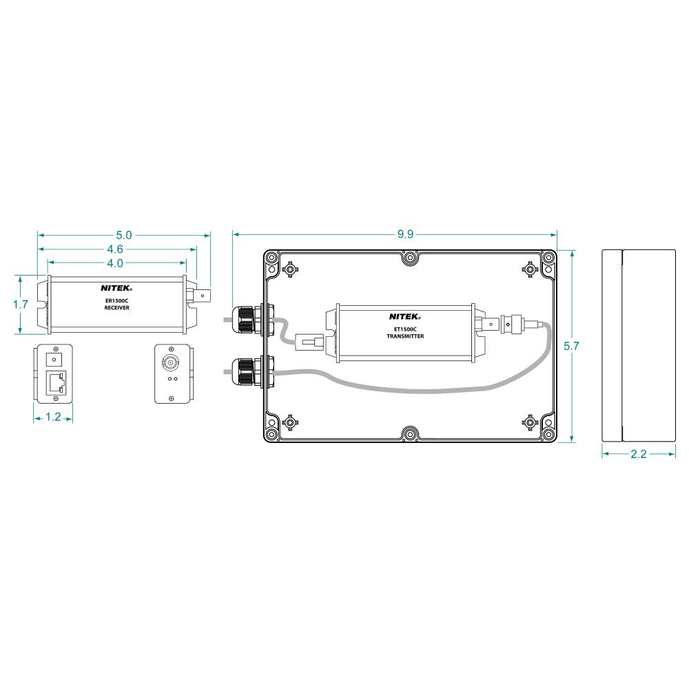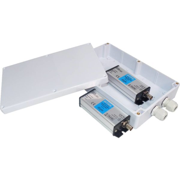 The EL1500CW is part of the EtherStretch solution for outdoor applications. The EL1500CW consists of an ET1500C mounted in a WP1325 enclosure for the camera side, and an ER1500C for the head end of the link. The EL1500CW is the complete solution for PoE power and 10/100 link extension over up to 500m of RG59 or RG6 coaxial cabling. The ER1500C sources power to the link by requesting power from a PoE switch or power up to 30W can be injected from an optional PS48 power supply.