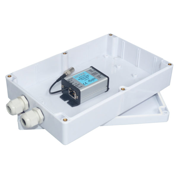 EtherStretch Lyte Ethernet and PoE Extender – Transmitter side in Weatherproof enclosure