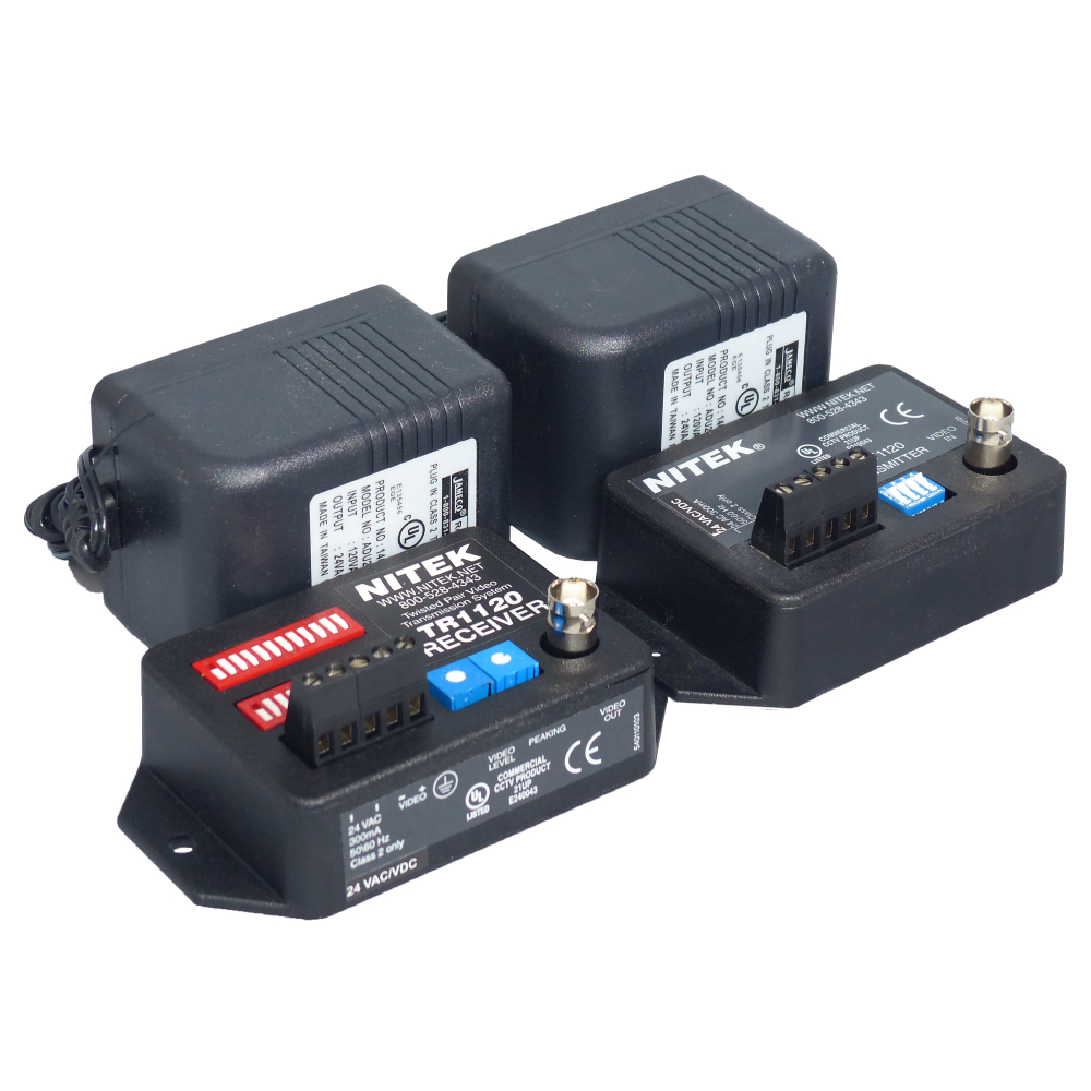 Long Range Active Video Balun System – Select, 1,000 feet to 12,000 fee. Includes: TT1120 Transmitter, TR1120 receiver, and Two (2) Power Setups.