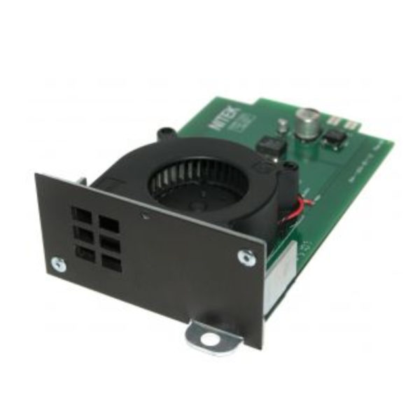 The FAN64 provides cooling for the CX452 Crossover unit. It can be inserted in slot 3 of the CX452 and is recommended for use with three or more POE48 cards. It can also be helpful for cooling the CX452 when operating in telecom closets with limited ventilation. The CX452 is a 1 RU card cage that is powered from a separate PS115 power supply (purchase separately).