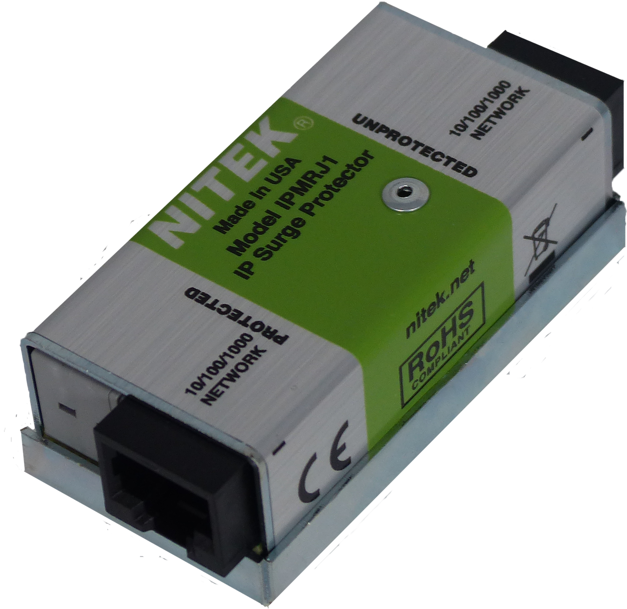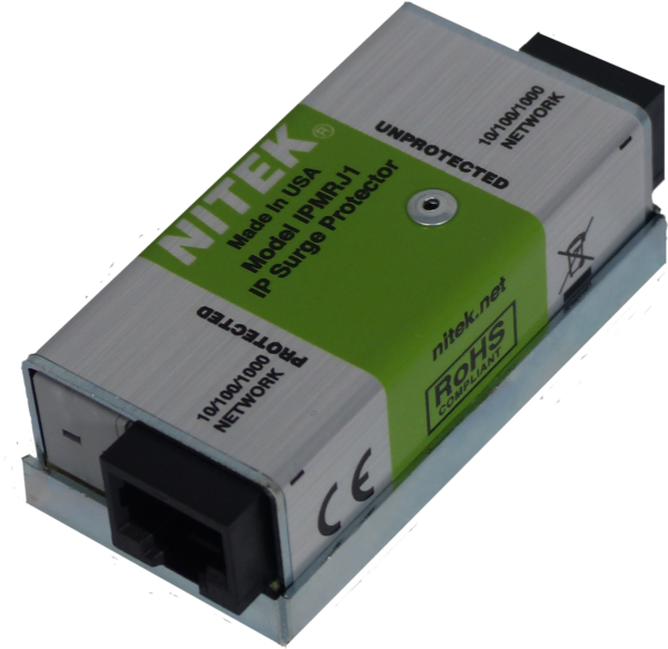 The IPMRJ1 is a single channel, in-line, 10/100/1000 Ethernet surge protector for IP cameras. The IPMRJ1 is designed to provide surge protection for one 10/100/1000 Ethernet port. The unit has standard RJ45 jacks for easy connection and is ideal for small or restricted spaces. The IPMRJ1 provides a heavy-duty, single-point ground connection and is easy to install in minutes.