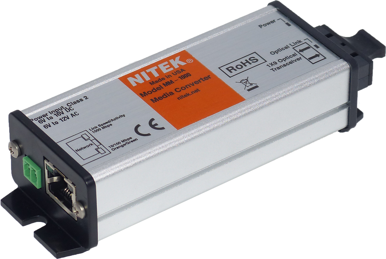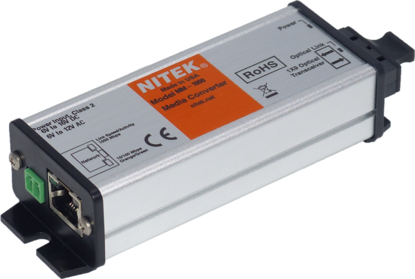 Gigabit Fiber Media Converter, 500 Meters, 1000BaseTX to 1000BaseFX, MM, 850nm, 6-15V, SC Connector.