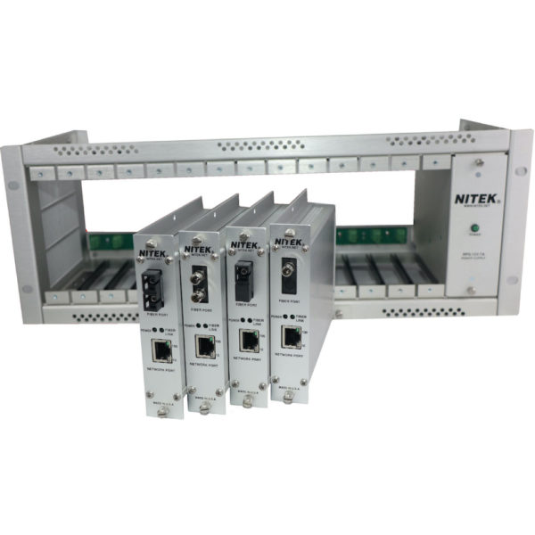 The RK5000 is a rack-mountable power supply for MM/MS/ML 4xx Media Converters. The RK5000 provides power for up to 14 Media Converters in a convenient 4RU format.The Rack is vented for passing cooling and provides a cable pass-through.