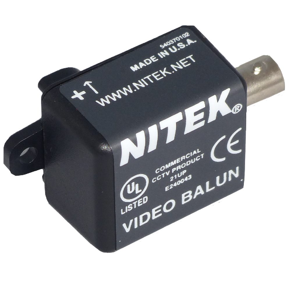 NITEK offers a wide variety of passive video balun transceivers. A passive transceiver is a non-amplified device that allows the transmission of analog color or monochrome video over ordinary unshielded twisted pair wires such as telephone cable or category-rated UTP cabling. NITEK passive video balun transceiver is a non-amplified device that allows the transmission of analog color or monochrome video over ordinary unshielded twisted pair wires such as telephone cable or category rated UTP cabling. NITEK passive video balun transceivers deliver high-quality balanced video signals to the recording devices. A passive video balun can deliver a fully equalized video signal up to 3,000 feet over a UTP cable when used with an active receiver. These units are intended for use over existing in-house telephone wiring, Category 5 wiring or other twisted pair cable runs to provide a convenient, cost-effective alternative to coax. They are designed to provide superior immunity from noise and interference due to EMI or RFI, which is often a commercial installation problem.