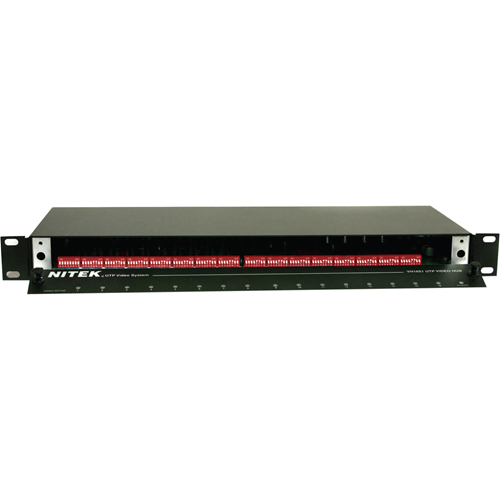 The VH1656 is a 16 port active video hub with dual outputs, built-in surge suppression, ground loop isolation, gain/loss control, and video detection. Systems operate with other Nitek UTP video equipment including, video transceiver hubs, standard video balun transceivers, active transmitters, or any twisted pair equipped camera.